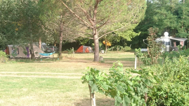 30 emplacements très spacieux (150 à 250 m²) mi-ombragés, totalement ombragés ou au soleil dont 24 sont électrifiés (6 ampères). Les sanitaires ont été aménagés dans des bâtiments anciens. Les douches chaudes sont gratuites et chauffées grâce à l’énergie solaire, et aussi pour le lavage de la vaisselle et du linge.